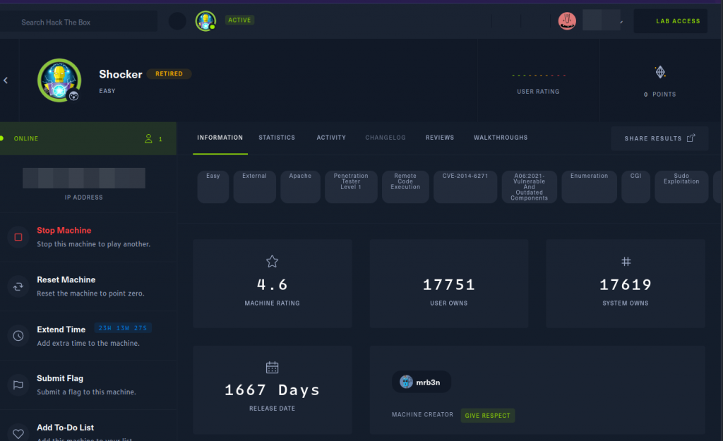 It’s an easy box. I learnt more about shellshock vulnerability and it was fun.