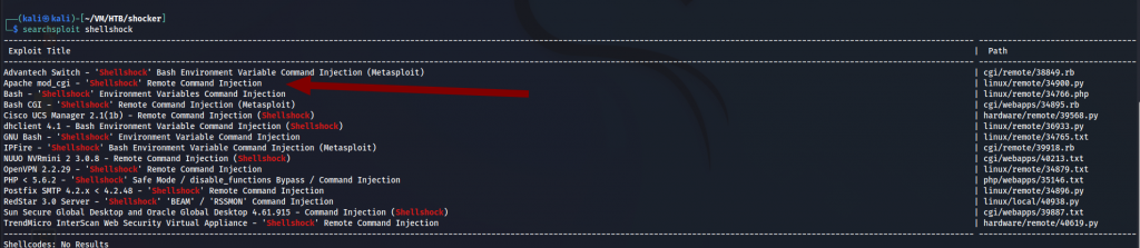 After looking at the searchsploit results, I am particularly interested in Apache mod_cgi RCE.