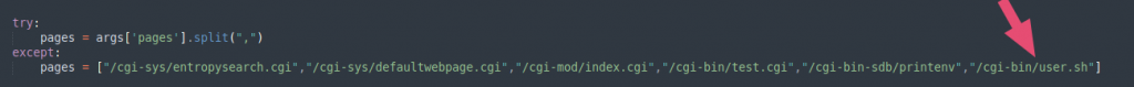 I downloaded the python script and after looking at the contents, I found out it has the setlist of pages it checks for the shellshock vulnerability. Our page/file, /cgi-bin/user.sh is not on the list so I added it to the list of pages for the script.